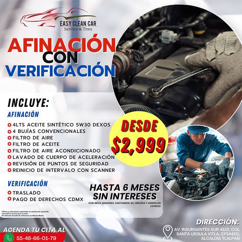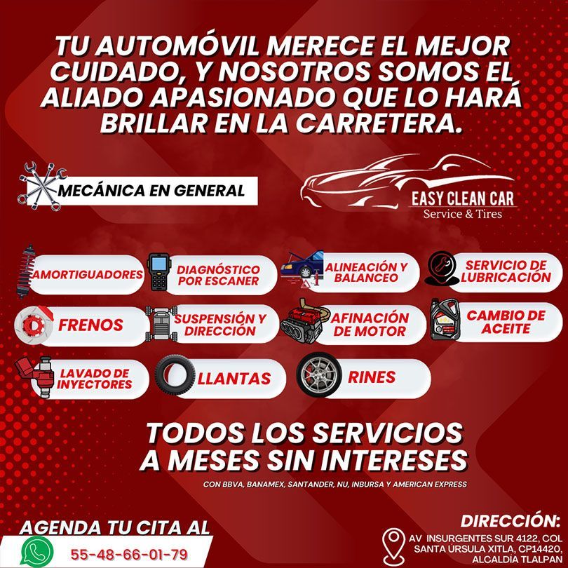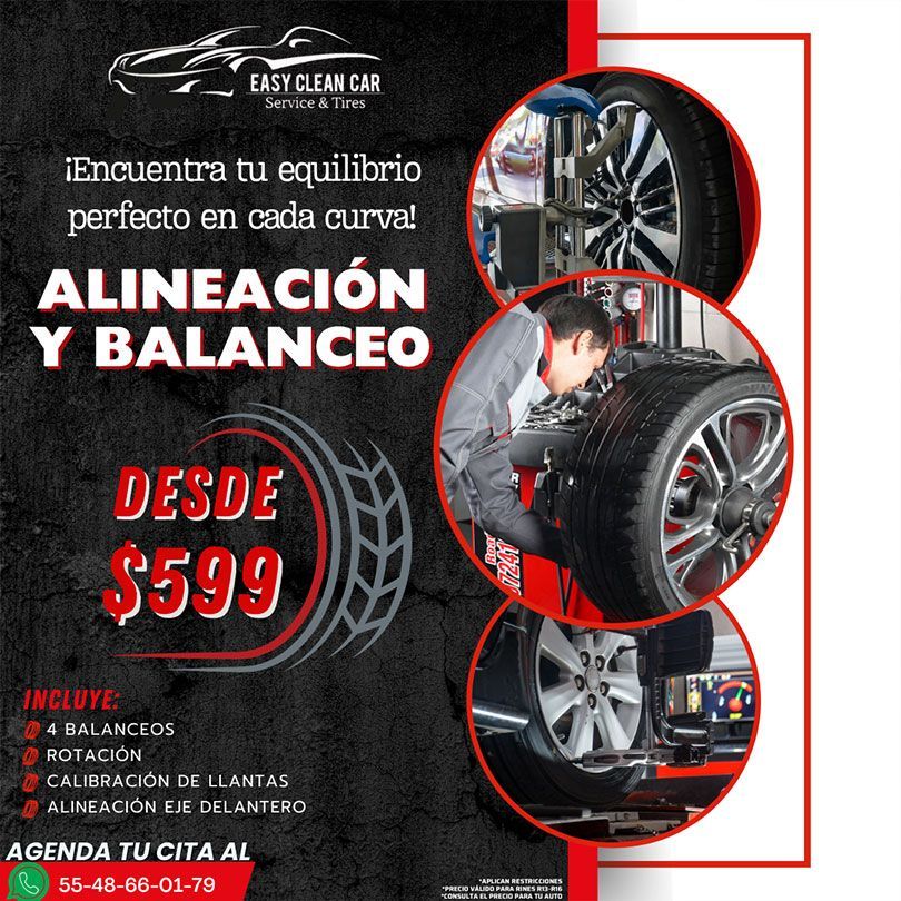 No esperes más para darle a tu automóvil el cuidado que se merece. ¡Contáctanos hoy mismo para programar una cita o para obtener más información sobre nuestros productos y servicios en la Ciudad de México! Venta de llantas CDMX, Easy Clean Car Service & Tires.